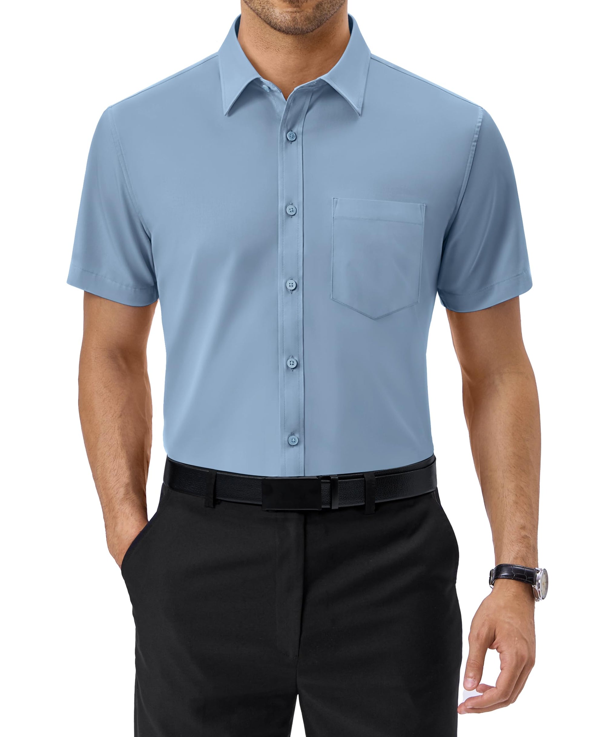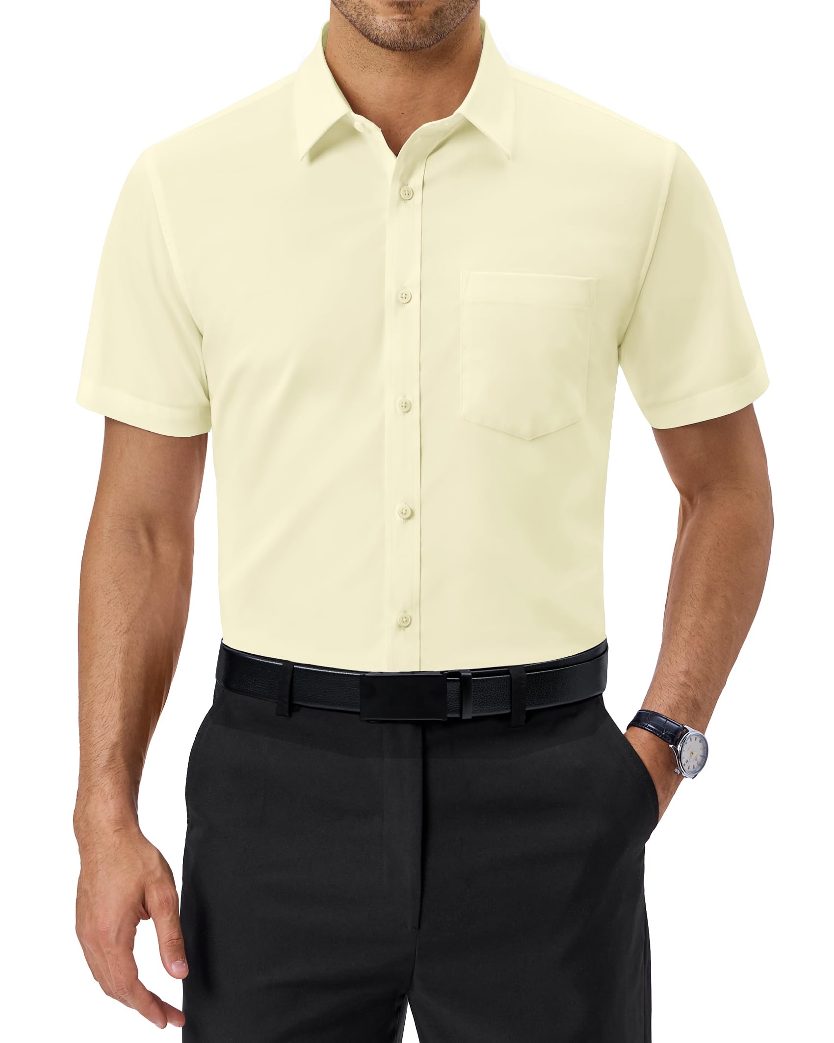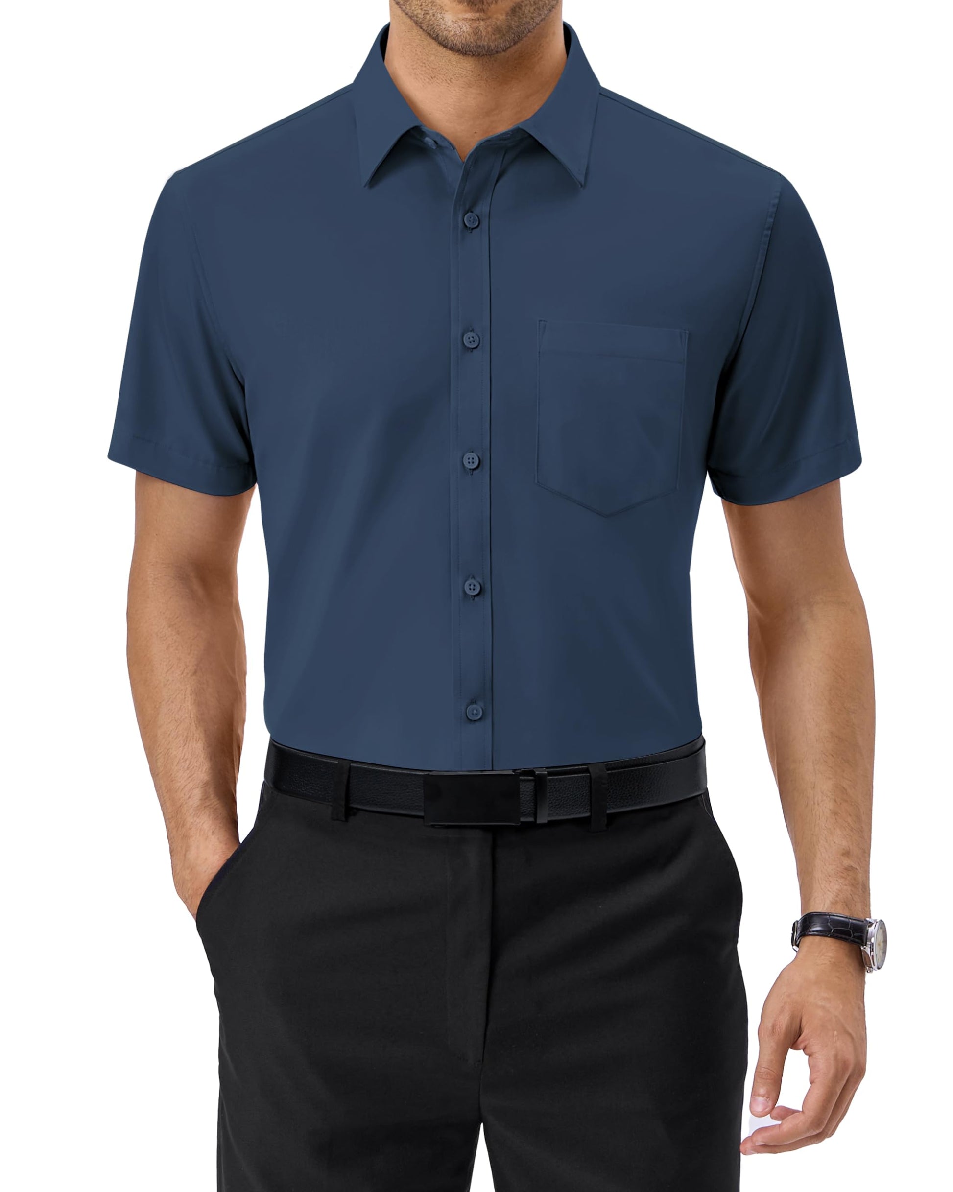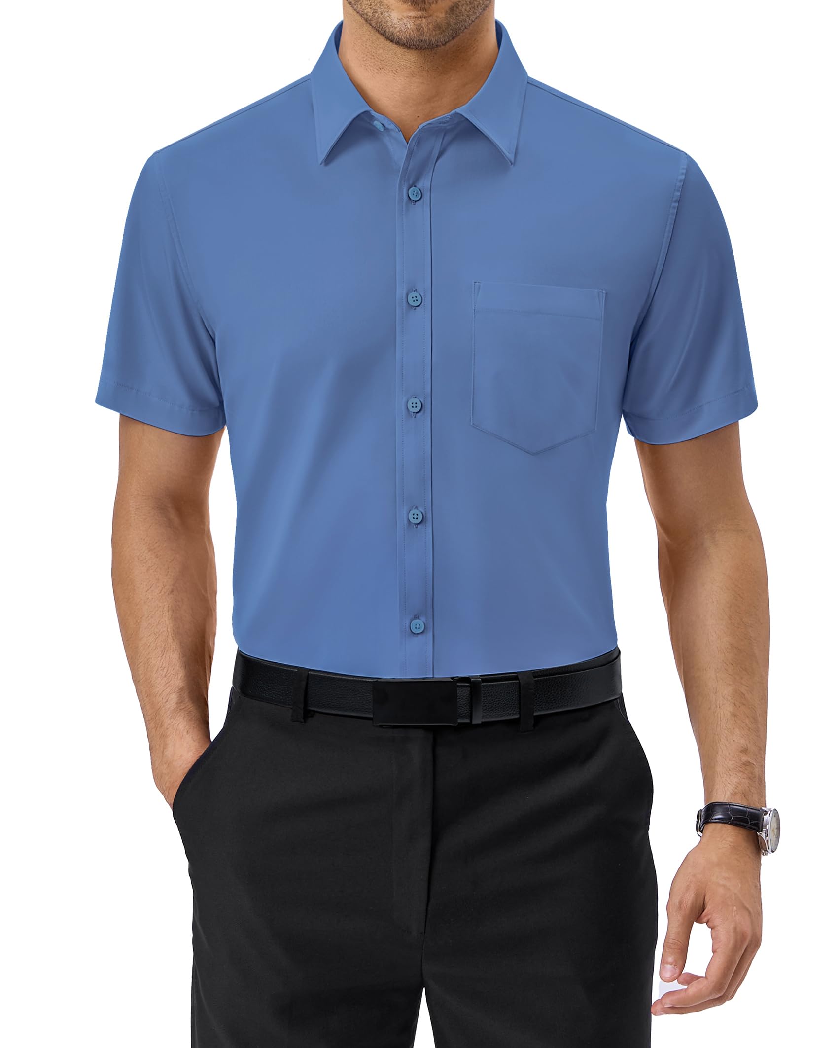 Alimens & Gentle Mens Short Sleeve Dress Shirts Regular Fit Stretch Wrinkle-Resistant Button Down Shirts