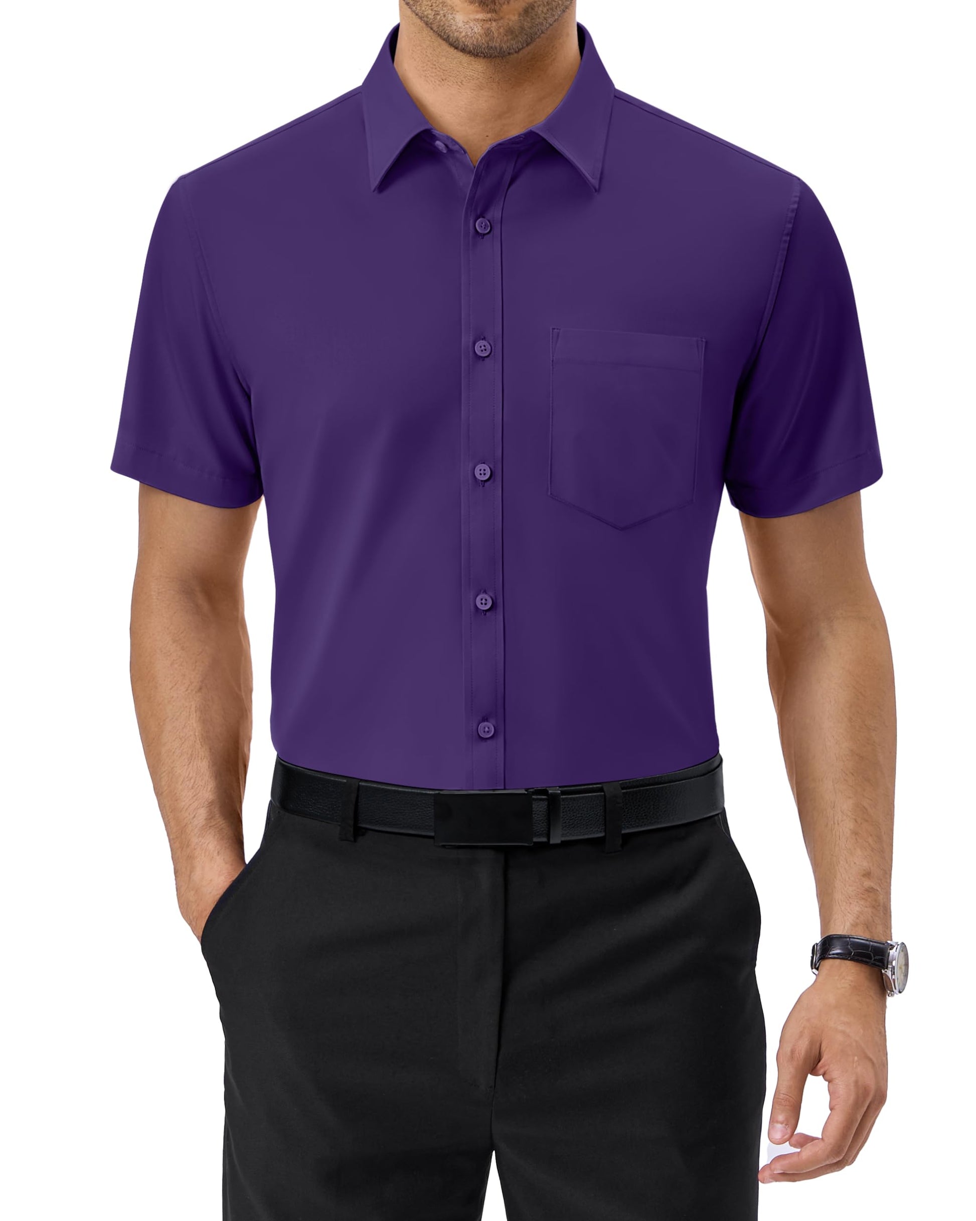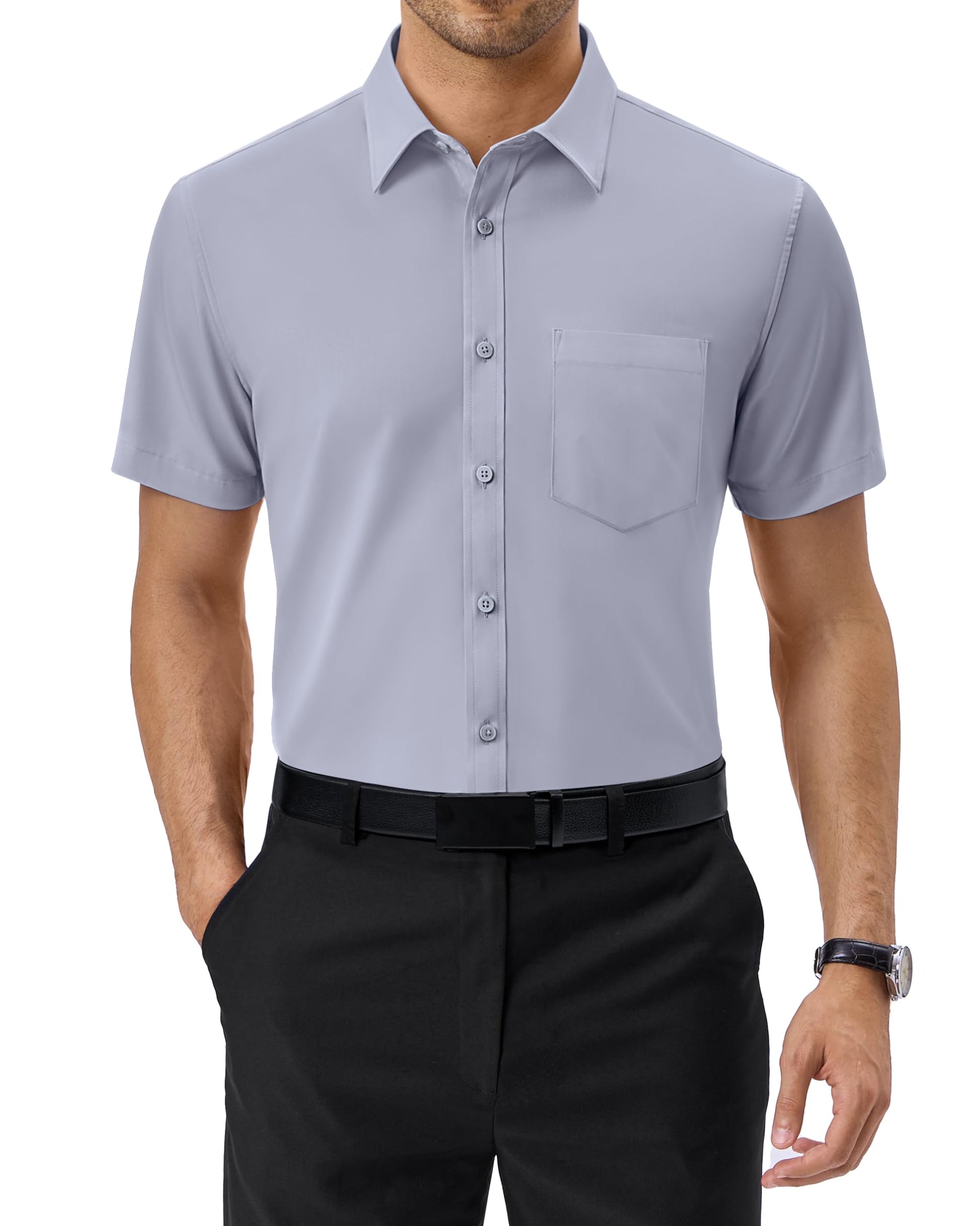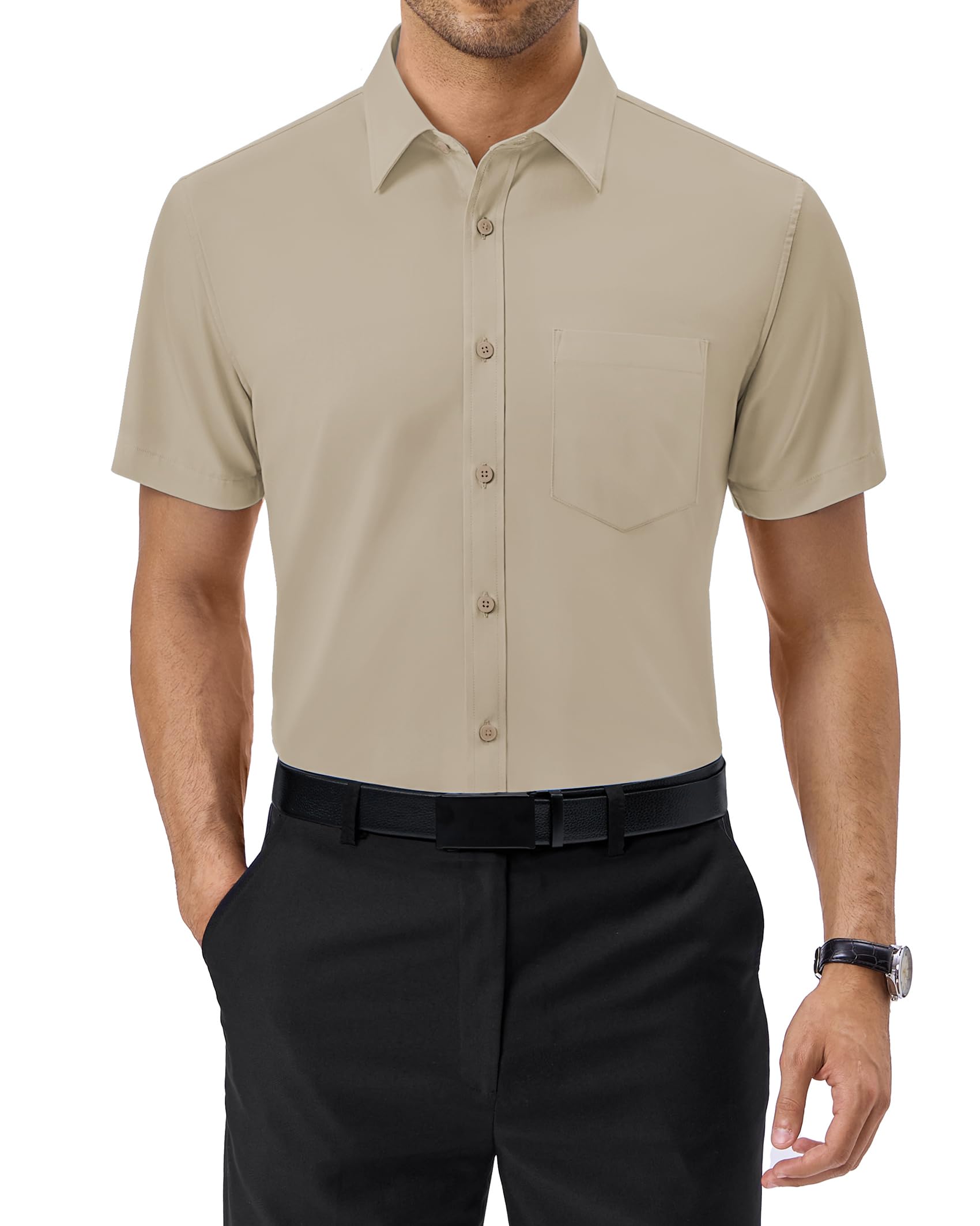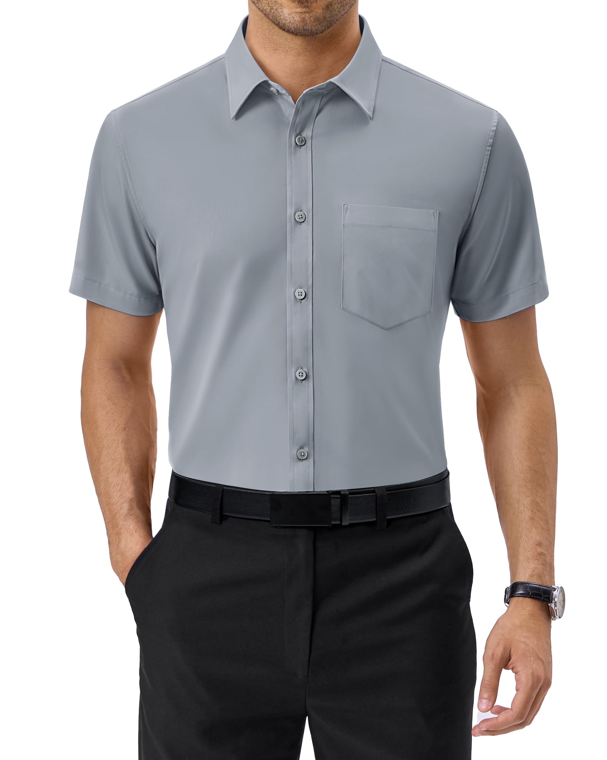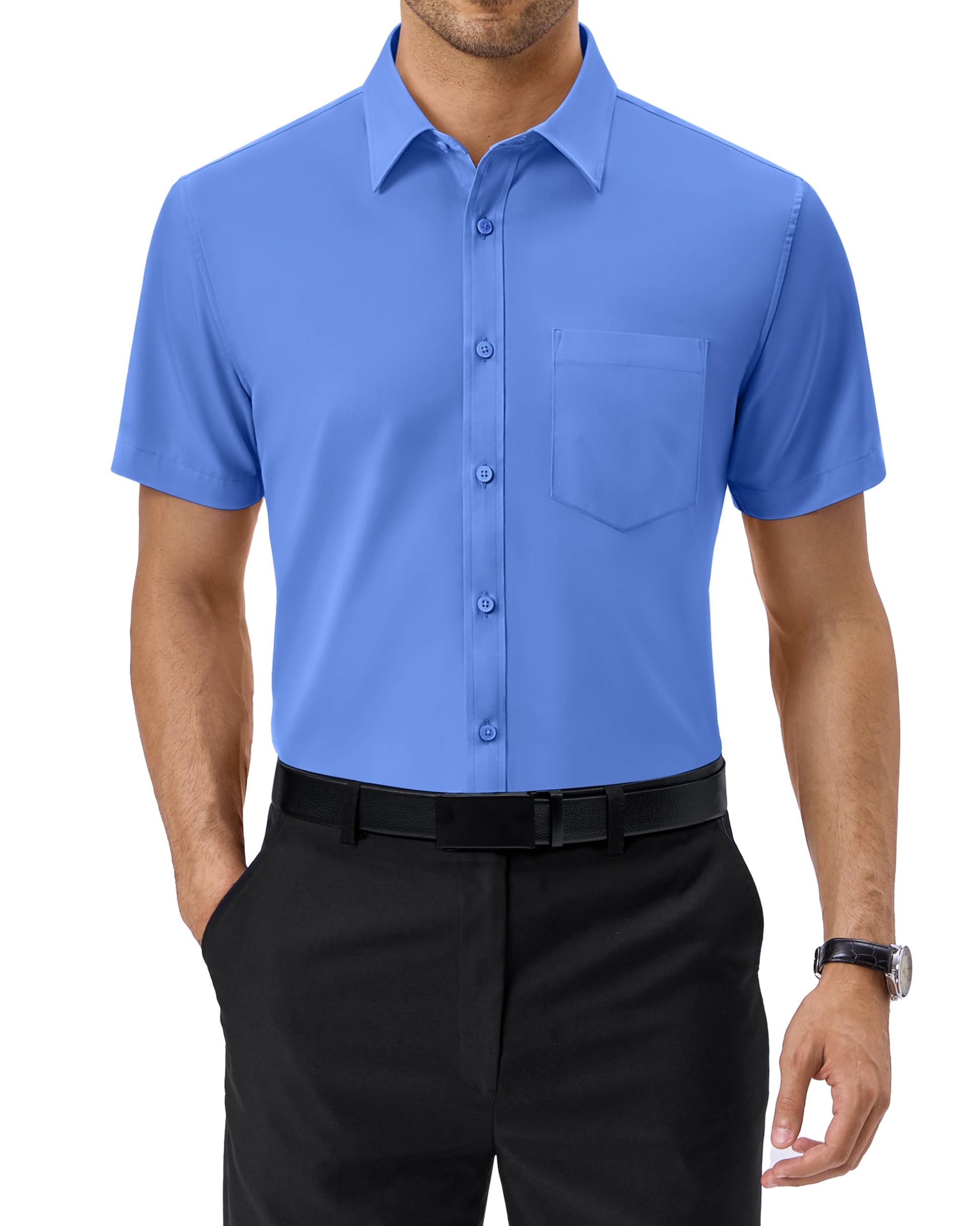 Alimens & Gentle Mens Short Sleeve Dress Shirts Regular Fit Stretch Wrinkle-Resistant Button Down Shirts