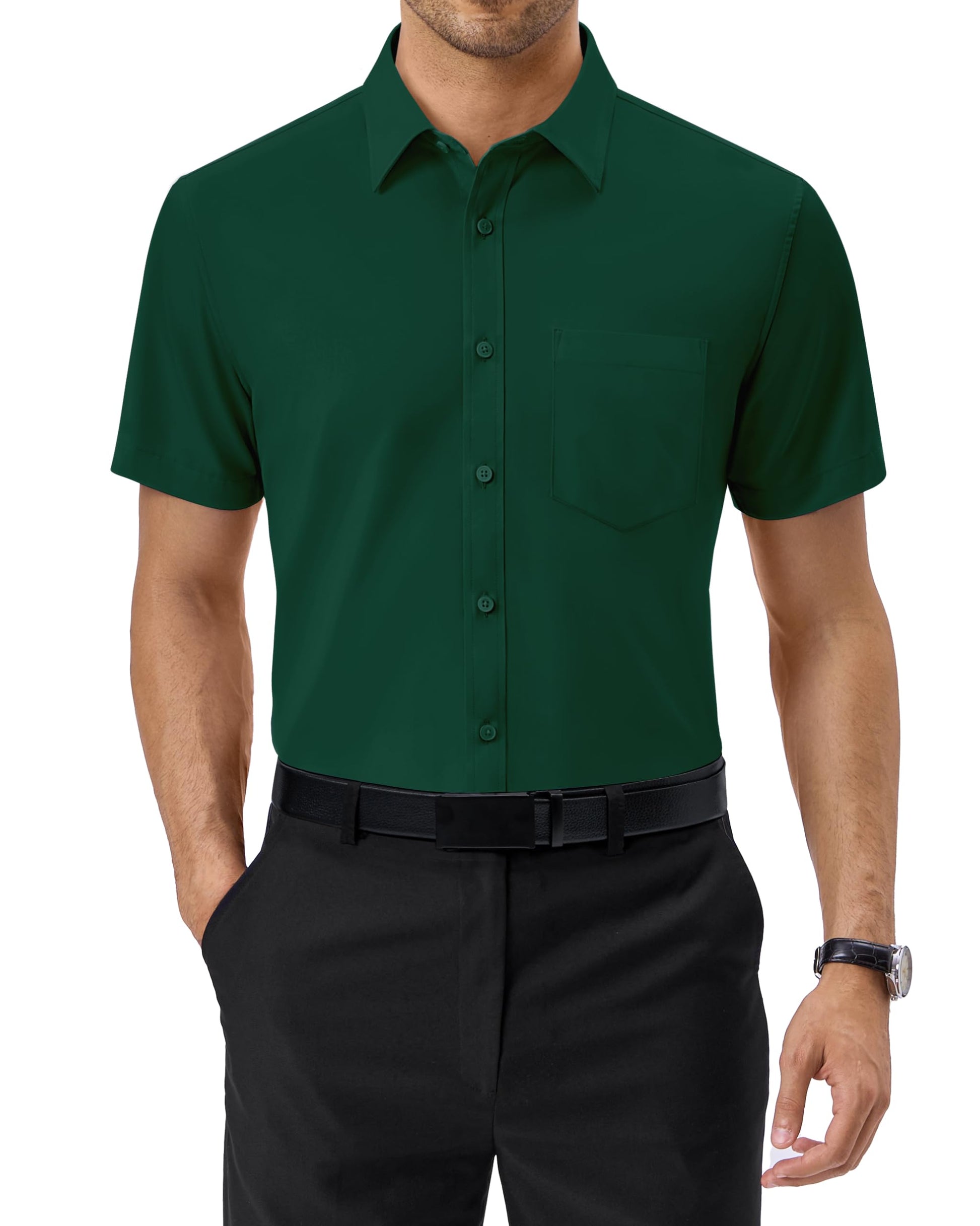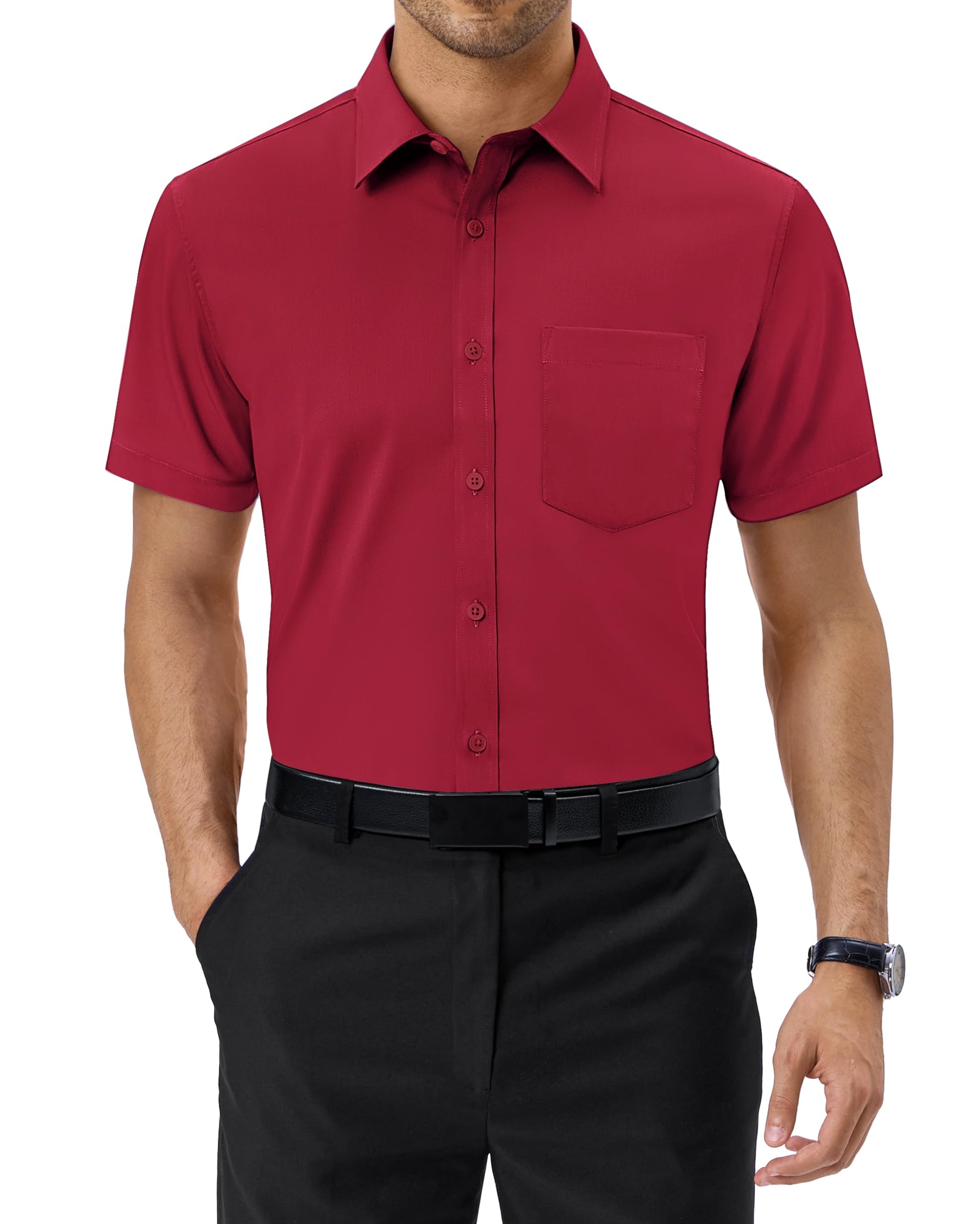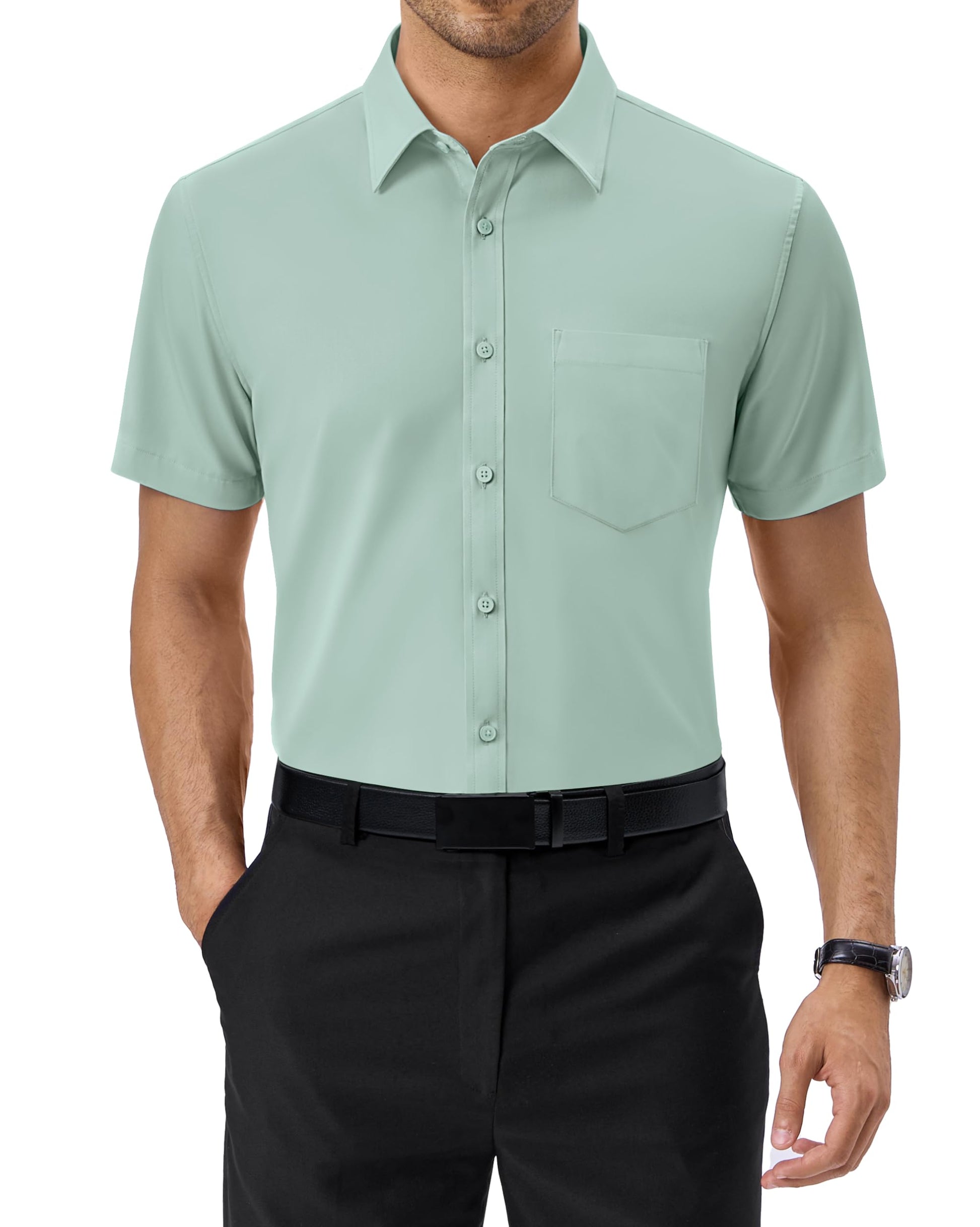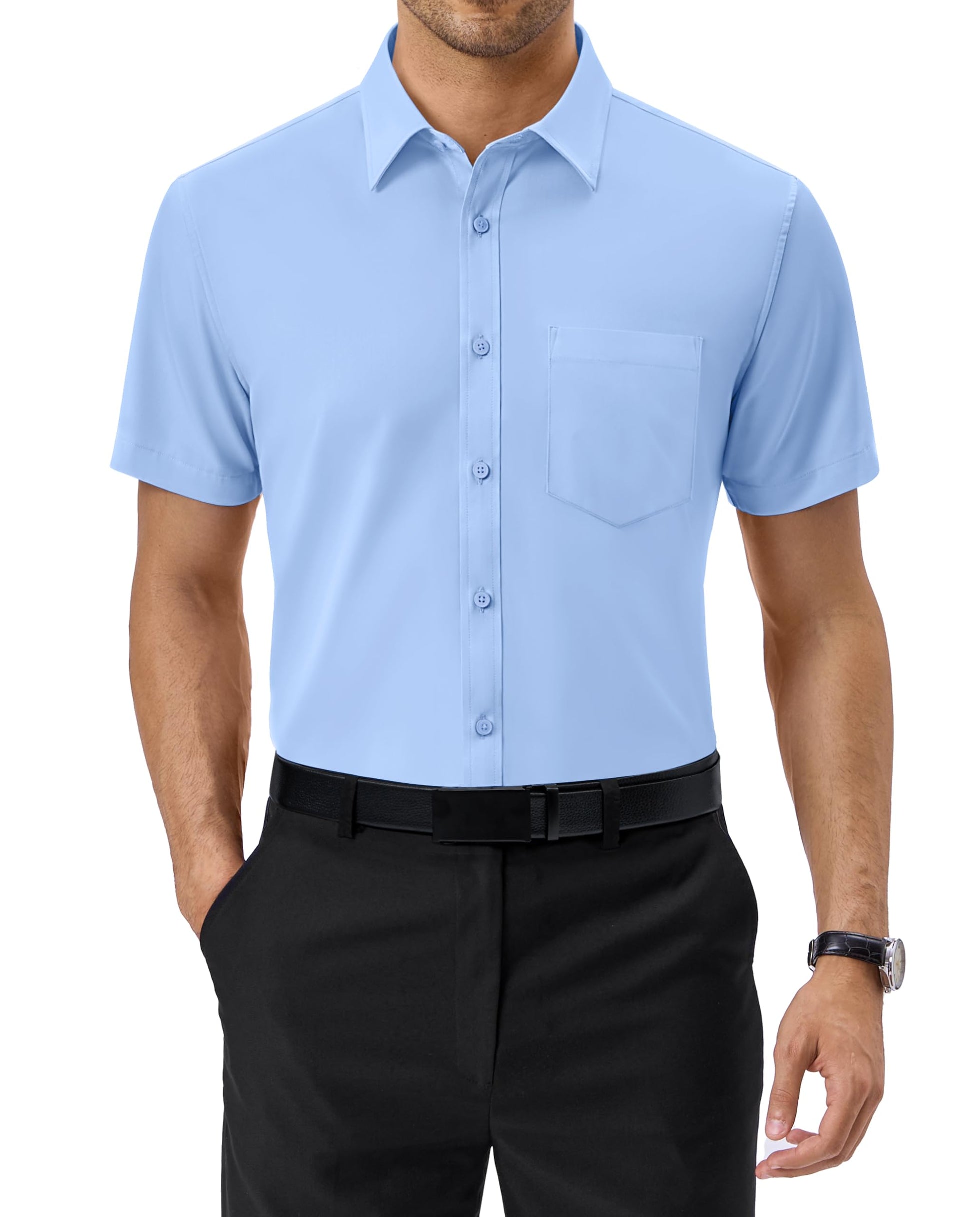 Alimens & Gentle Mens Short Sleeve Dress Shirts Regular Fit Stretch Wrinkle-Resistant Button Down Shirts