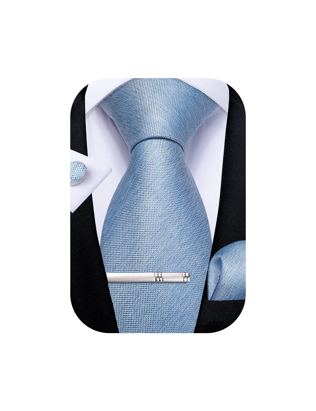 Mens Silk Necktie Solid Color Tie and Pocket Square Cufflink Tie Clip Set Woven Plain Ties for Men Wedding Party