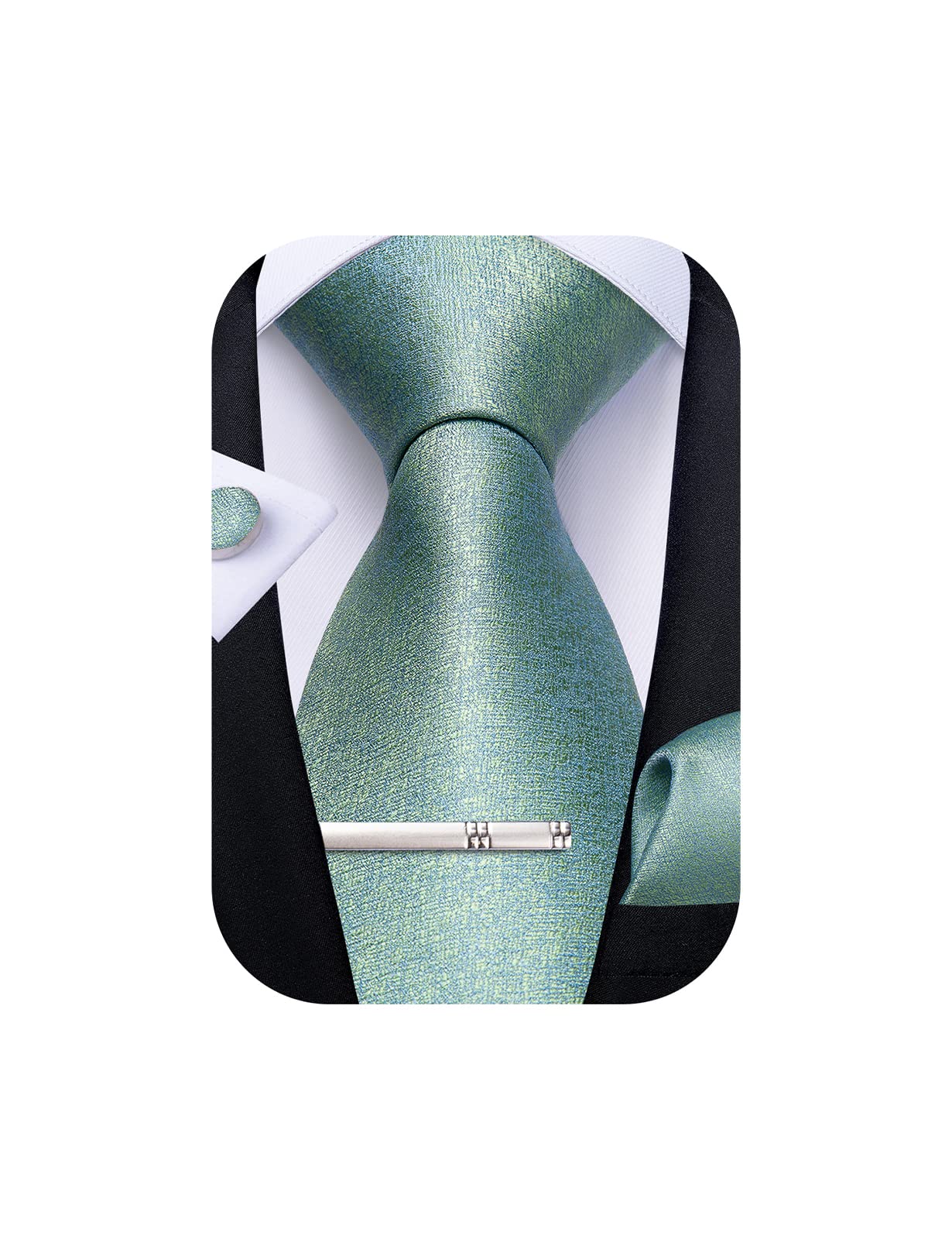 Mens Silk Necktie Solid Color Tie and Pocket Square Cufflink Tie Clip Set Woven Plain Ties for Men Wedding Party