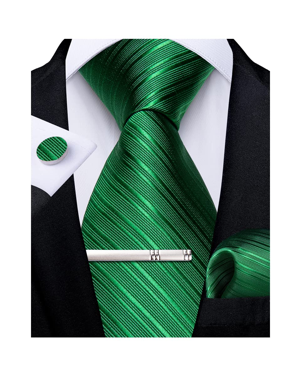 Mens Silk Necktie Solid Color Tie and Pocket Square Cufflink Tie Clip Set Woven Plain Ties for Men Wedding Party