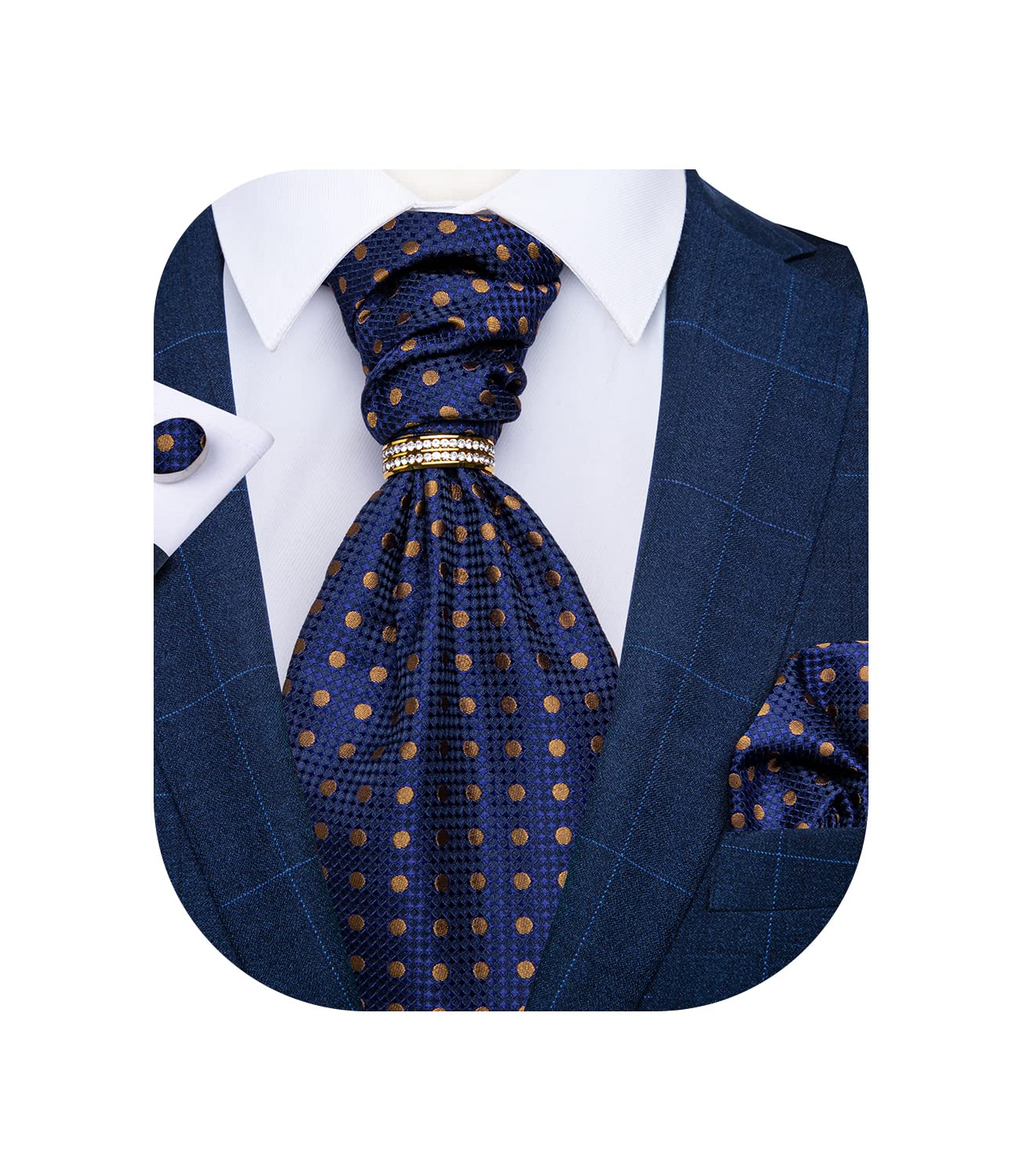 DiBanGu Paisley Ascot Ties for Men Silk Woven Cravat Tie and Pocket Square Cufflinks Set with Tie Ring for Wedding Party