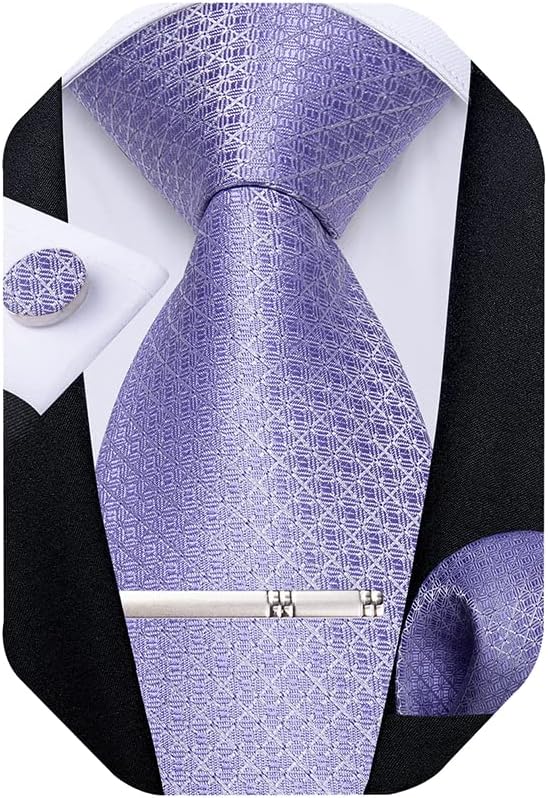 Plaid Ties for Men Silk Checkered Necktie and Pocket Square Cufflinks Tie Clip Set with Gift Box for Wedding Business