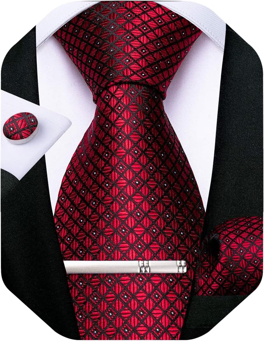 Plaid Ties for Men Silk Checkered Necktie and Pocket Square Cufflinks Tie Clip Set with Gift Box for Wedding Business