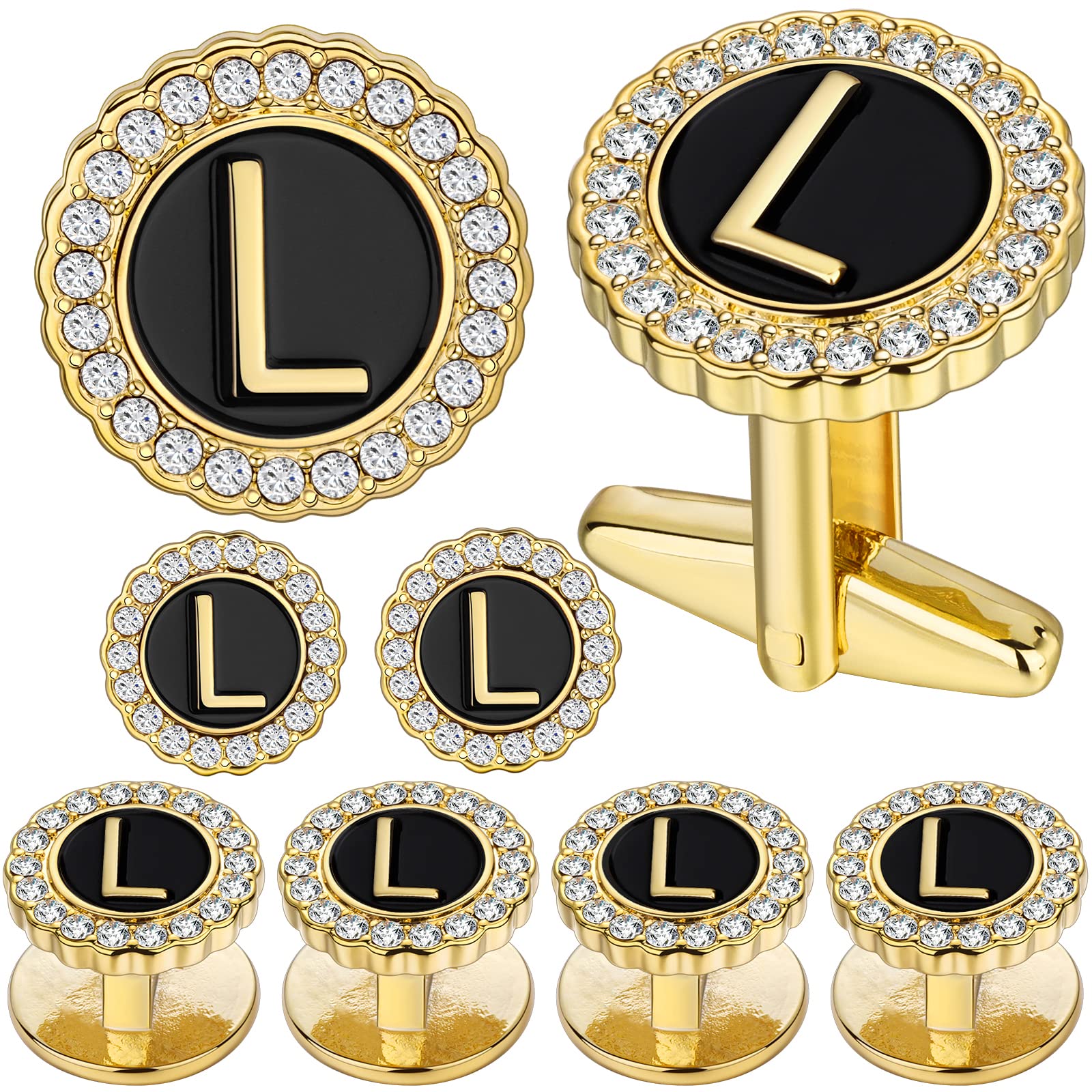18K Gold Tone Initial Cufflinks for Men with Tuxedo Studs