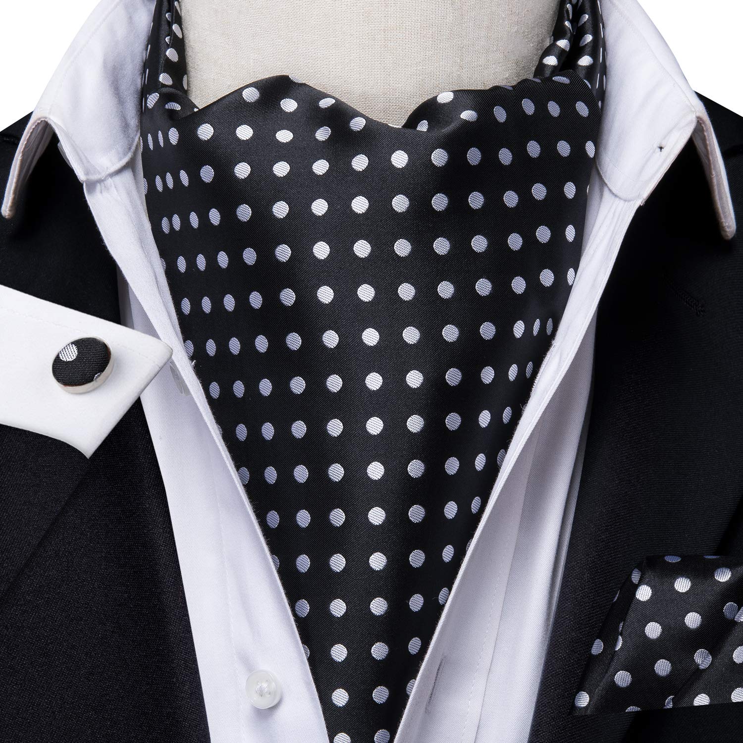 Silk Ascot for Men Self Tie Men's Cravat and Flower Lapel Pin Handkerchief Cufflinks Set for Wedding Party